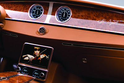 The body of the concept car is constructed of handmade carbon fibre parts colored dark blue while the wings and doors are made out of polished aluminum. The same straightforward design is also found in the interior. The dash panel elements been reduced to the bare essentials with two centrally located main gauges, a small instrument panel in front of the driver and a large LCD screen on the lower center console.